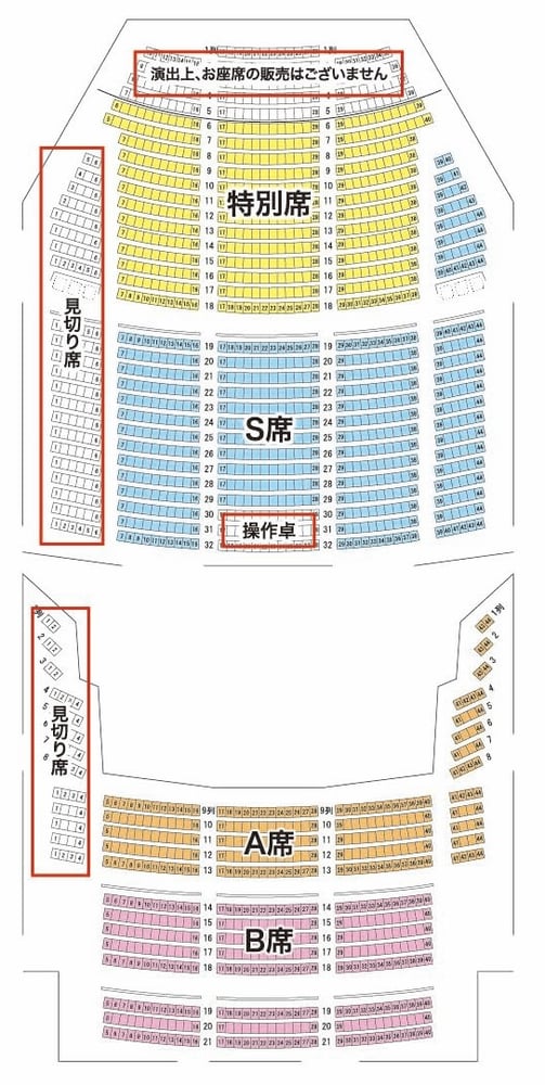 ※車いす席をご希望のお客様は、予めお問合せください。 ※エリア指定のみ可能となっております。お座席の指定はできません。予めご了承ください。 ※3歳未満は、膝上鑑賞に限り無料。(お席が必要なさいは、チケットをご購入ください。) |