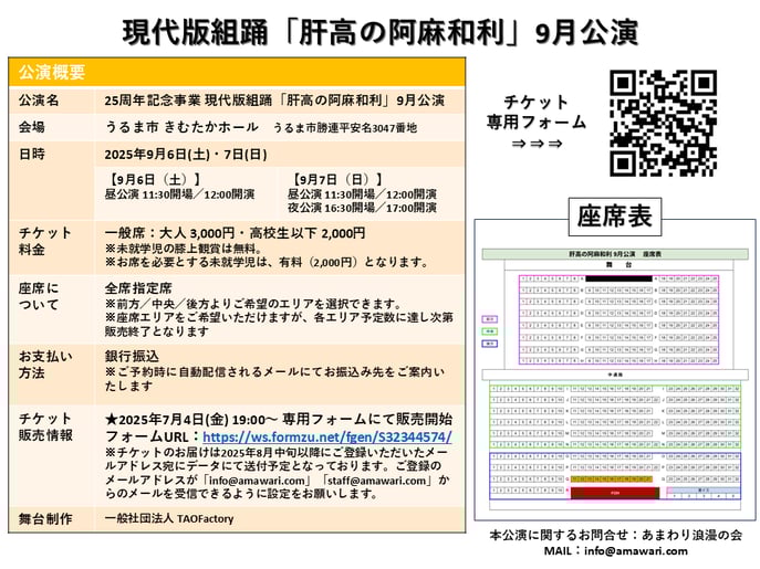 フォームURL:現代版組踊「肝高の阿麻和利」9月公演チケットご予約フォーム